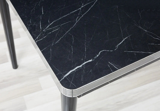 Royal Mermer Black Wooden Extendable Dining Table with 6 Velvet Chairs